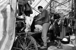 帳篷內(nèi)亂七八糟,一張只能容下身子的木床上,被子、衣服堆放一起,煮飯工具、雜物等散亂一地。兩三平方米的空間,連轉(zhuǎn)個(gè)身都困難。帳篷外雜草叢生,周邊殘留著房屋嚴(yán)重破損的痕跡,半裸露的磚頭和墻壁,漆黑的瓦片,老舊的木門早已被蟲噬。