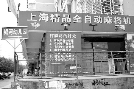 走進店鋪,各種機麻擺在店中間,老板娘正在悠閑地上網(wǎng)。當問起墻上廣告時,老板娘說廣告是她老公做的,她也不知道有沒有科學根據(jù)。“很多人看到這個廣告后,還來進行詢問和拍照等。”