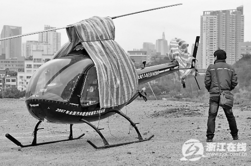 昨天下午,記者在溫州楊府山看到了朱先生的這架兩人座的羅特威Exec162F直升機。同時,民航華東空中交通管理局溫州空中交通管理站的工作人員也來到了現場,并一再要求朱先生保證在沒有任何審批手續的情況下,不能再飛行。