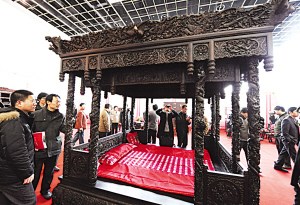 在南京制作了3年首次亮相的大葉紫檀紅木龍鳳床,價(jià)值800萬(wàn)元。