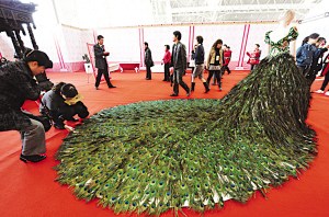 由2010根羽毛、云錦織成的千萬(wàn)元婚紗。