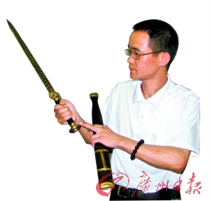 陳再榮:我沒有后悔過,只是有時候因為實在沒錢,只好暫時停下來。這些年來,我買了不少關于鑄劍方面的書自學鑄劍術,也看了不少與劍有關的文章。讀這些書,使我明白,劍是一種精神,是一個人的魂。(嚴建廣)