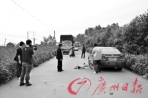 前日下午3時許,事主蘇某駕駛一輛豐田皇冠小汽車行駛至松崗南國桃園稅務信息處理中心路段時,與一輛載著一男一女的自行車發(fā)生碰撞,自行車上的一男一女隨即倒地。此時,一輛紅色汽車開來,紅車司機攔住蘇某的車告知他“有人被撞、趕快下車”。