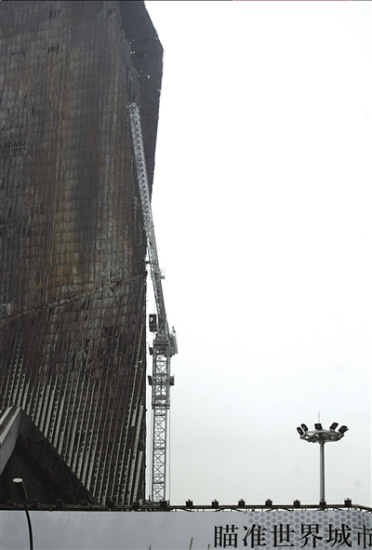 昨天,記者在央視大樓新址看到,過(guò)火的北配樓工地上已搭起塔吊。北京城建集團(tuán)相關(guān)項(xiàng)目負(fù)責(zé)人透露,他們正在為過(guò)火樓復(fù)工做前期準(zhǔn)備。