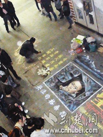 獨腿乞丐武漢街頭繪畫 賣畫所得捐玉樹(圖)