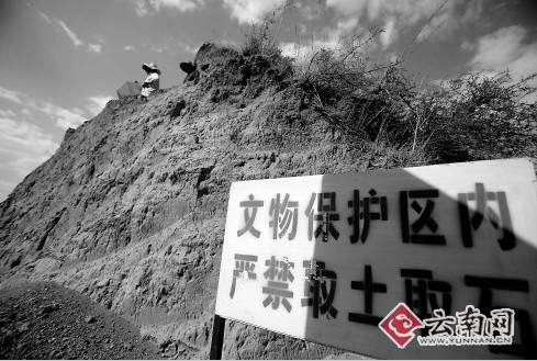 龍首關城墻遺址旁立起了保護牌。(圖片來源:云南網)