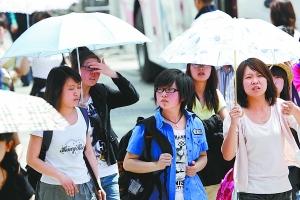 昨天,京城艷陽(yáng)高照,氣溫上升迅速,出行的人們紛紛撐起遮陽(yáng)傘。本報(bào)記者 孫戉攝