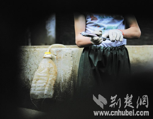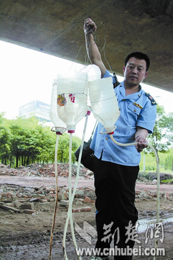 圖為:留在現(xiàn)場(chǎng)給生豬注水的5升油壺