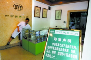 張悟本所在的“中研健康之家”,擺出了告示,稱非醫(yī)療機(jī)構(gòu)。記者 孫純霞 攝