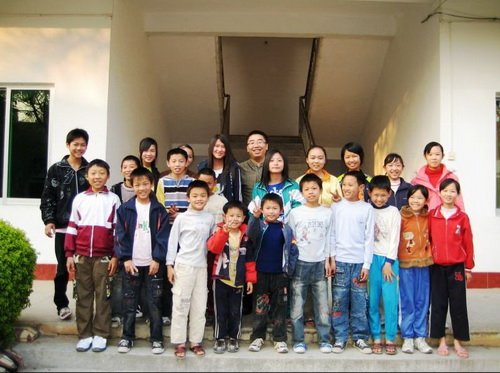 孩子王博士副縣長與留守兒童合照。