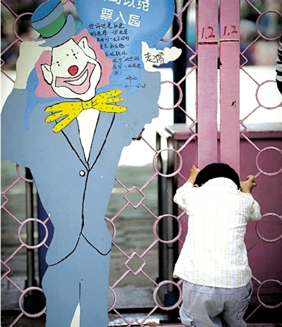 資料圖片 即將停業(yè)的游樂園大門上寫滿了懷念快樂時(shí)光的字樣。