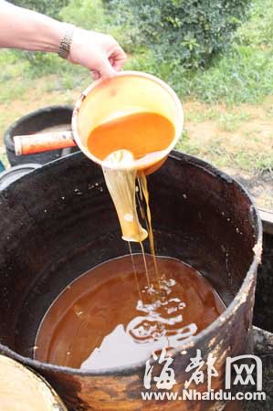 在福清城區(qū)、宏路、鏡洋、漁溪、東張等地的小飯館里收集泔水,運(yùn)到鏡洋鎮(zhèn)東風(fēng)村東林自然村一個偏僻的果園里加工成地溝油,然后又偷運(yùn)到當(dāng)?shù)匾恍┬★堭^里。經(jīng)過簡單加工的地溝油被消費(fèi)者吃進(jìn)肚子……本網(wǎng)記者在當(dāng)?shù)貛孜粺嵝淖x者的幫助下,經(jīng)過數(shù)月暗訪,昨日,與鏡洋鎮(zhèn)工商所、鏡洋鎮(zhèn)派出所一起,將這個地溝油地下加工窩點(diǎn)端掉。