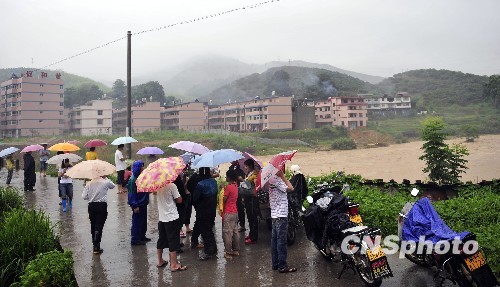 6月14日,南平市中南部普降暴雨,其中延平區(qū)降特大暴雨。當(dāng)日12時(shí)30分許,在縣道延塔線11公里處突發(fā)山體滑坡,將途經(jīng)該路段的1部中巴車和1部面包車(車內(nèi)司乘人員共31人)推入水流湍急的西塔溪中,其中7人獲救,24人失蹤。圖為案發(fā)現(xiàn)場(chǎng)西芹鎮(zhèn)福建農(nóng)林大學(xué)附近閩江邊,大家正焦急的等待搜救中。 中新社發(fā) 柳濤 攝