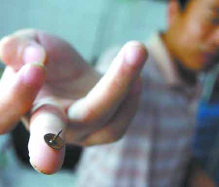 “圖釘寶寶”的父親王華振介紹,他今年32歲,是安徽農村人。前段時間,他帶著妻女在天津打工,5月26日早上,他上班后妻子在住處洗衣服,兩歲多的女兒欣欣(化名),在另一間屋里“照顧”兩個月大小的女兒文文(化名)。不一會兒,妻子聽到小女兒哭,以為她餓了便過去喂奶,沒想到嗆得咳嗽。