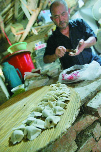 張東明家常包餃子,因?yàn)樵滥赶矚g吃這個(gè)。