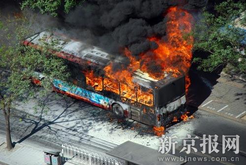 今晨8時30分北京一公交車自燃 幸無人員傷亡(圖)