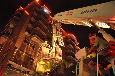 他沿著防盜網,從8樓下到5樓,再也下不去;寧德消防調來32米高的云梯車,把他救下