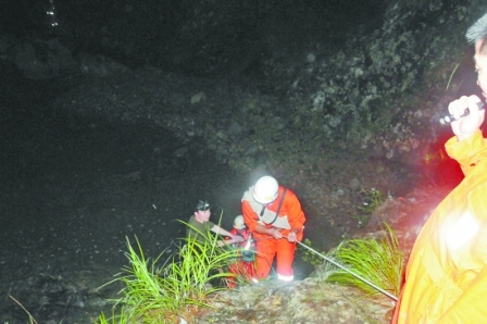 56名驢友歷經周折才打通了報警電話,前天晚上,消防人員連夜進山搜救。