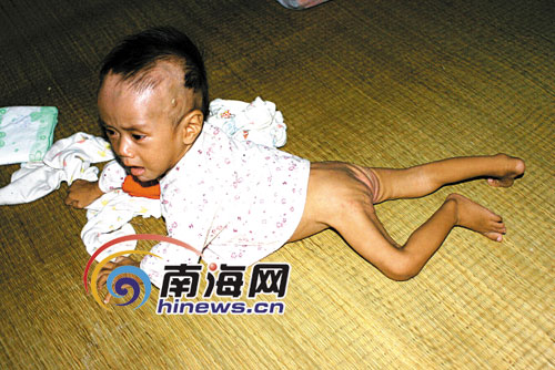 海口市新坡鎮保禮村出生8個月大的小其清被母親遺棄在家8天,期間沒有人細心照顧,餓成皮包骨。當小其清在外做工的父親回家看到這一切,才將在屎尿中哭泣,并且上吐下瀉、發著高燒的兒子送往醫院。近日,愛心人士將小其清的事情上傳到網絡,網友們形象地稱其為“皮皺皺”。