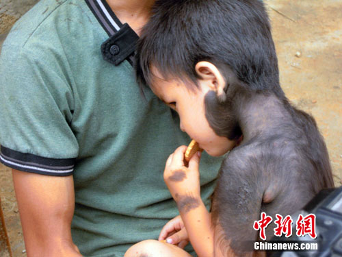 廣西河池市大化瑤族自治縣一名兩歲男童,從后腦勺到腳部幾乎都長著長毛。更奇怪的是,只要一剪掉他的長毛,這名“毛孩”就會立即發(fā)高燒。經(jīng)專家初步診斷,毛孩是患了“黑毛痣”,然而像這樣這么小年紀(jì)卻長有這么大面積、尤其是剪毛后會發(fā)燒的情況,在臨床上實屬罕見。