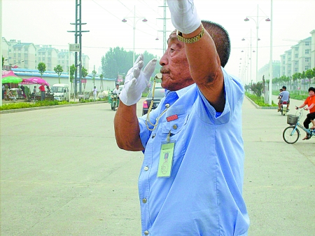 郭岐山原是鶴壁煤炭系統(tǒng)勞模、先進工作者。30年前,當了28年鉚焊班長的他退休了,因擁有豐富的經(jīng)驗和精湛的技術(shù),許多私營企業(yè)紛紛上門高薪聘請,都被他拒絕了,因為他有了新的興趣點。一次老人去買菜,路過離家不遠的一個丁字路口,這里被堵得水泄不通。老人把買菜的事拋到腦后,開始疏導(dǎo)起交通來,一番大汗淋漓換來群眾嘖嘖稱贊。此后,老人就常來“捋順”道路。交警隊的領(lǐng)導(dǎo)聽說后,親自來表示感謝,并且要每月給老人200元,老人拒絕了,說只想為社會做些力所能及的事情。交警的領(lǐng)導(dǎo)被感動了,答應(yīng)了老人的請求,給他配備了袖章、小口哨、對講機。從此,他每天上道熱心“捋路”,不想這一“捋”就是30年。