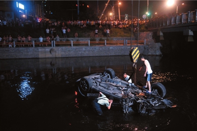 前晚11點(diǎn),朝陽區(qū)酒仙橋路壩河橋梁處,一輛高速行駛的保時(shí)捷凱宴轎車先后與迎面而來的兩車相撞后,沖破河邊護(hù)欄,倒栽入水深半米的河中。車內(nèi)一男子被路人救出后,聲稱尚有3人被困。消防員隨后“地毯式”排查兩小時(shí),但并未發(fā)現(xiàn)車內(nèi)及水中有人。該男子與被撞兩車的司機(jī)不同程度受傷,其所述被疑不實(shí)。