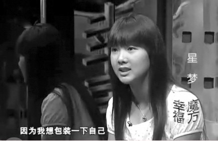 母親是下崗工人,父親是普通職員,她曾想通過相親節(jié)目《非誠勿擾》、《為愛向前沖》等成名。波普藝術(shù)倡導(dǎo)者安迪·沃霍爾曾說過一句名言:“在未來,每個(gè)人都有成名15分鐘的機(jī)會(huì)。”然而為了這成名的15分鐘的機(jī)會(huì),19歲的少女小曼(化名)不僅參加了超過百場(chǎng)的選秀,甚至還想通過參加與自己年齡并不相符的相親節(jié)目出名。