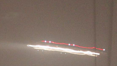 通過對照片的技術處理,隱約能從光源尾部復原出飛機尾部
