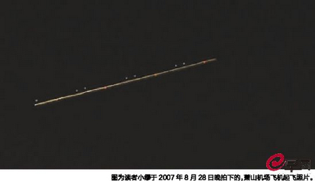 讀者小繆于2007年8月28日晚拍下的蕭山機場飛機起飛照片。
