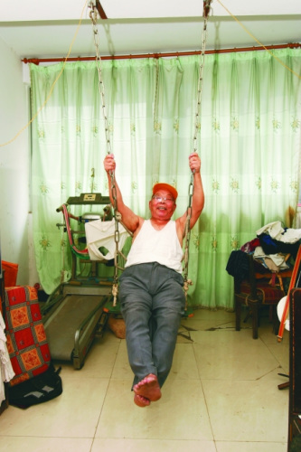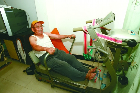 李海和在家中鍛煉身體。本組圖片見習記者 張永波 攝