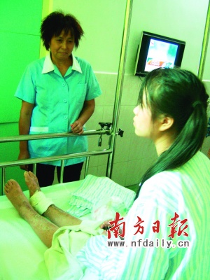 她被工友送到東莞市人民醫院搶救,因傷勢太重,又轉到廣州軍區廣州總醫院。經診斷,她的兩節腰椎爆裂性骨折并不完全性截癱,一節胸椎壓縮性骨折,雙腳踝粉碎性骨折,必須盡快接受手術。
