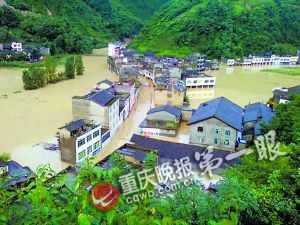廟壩鎮(zhèn)被淹的情景(資料圖片)
