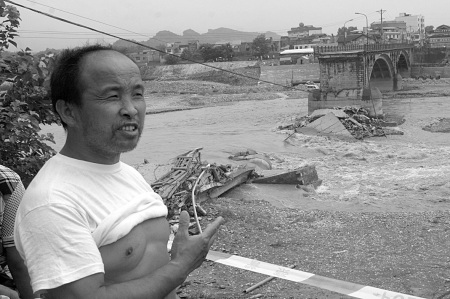 “當時轟隆一聲巨響,把我突然驚醒。我以為是安昌江漲大水,水翻堤后把哪家房子沖倒了。于是我坐起來,摸起電筒就往樓下沖。”緊挨橋頭而居的張大爺回憶說,他拿起電筒下樓后,打開房門,步入街道才發現,并沒有漲大水。