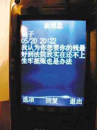 劉某給王霞發的短信。(注:王霞將手機中劉某的名字存為“騙子”)
