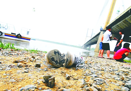 15日, 蚌埠市淮河公路大橋下,劉開瑾的鞋子還留在岸邊。淮河晨刊圖