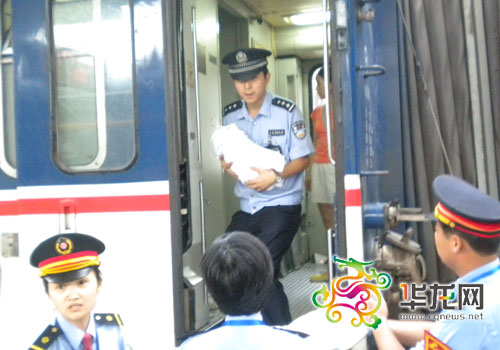 乘警將新生女嬰抱下列車 重鐵公安處供圖