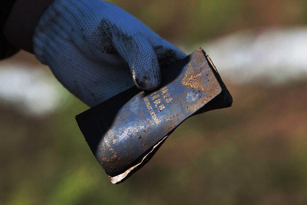 8月25日,救援人員在黑龍江伊春飛機失事現場找到駕駛員執照。