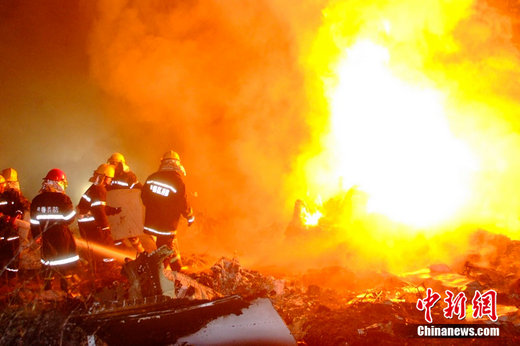 24日21時(shí)36分許,河南航空有限公司(原鯤鵬航空公司)一架由哈爾濱飛往伊春的E190型飛機(jī)在抵達(dá)伊春機(jī)場(chǎng)降落時(shí)失事,機(jī)上包括5名機(jī)組人員在內(nèi)共96人。失事現(xiàn)場(chǎng)發(fā)現(xiàn)42具遇難者遺體,其余54人獲救送醫(yī),目前無(wú)生命危險(xiǎn)。圖為飛機(jī)失事現(xiàn)場(chǎng) 張恩普 王志富 攝