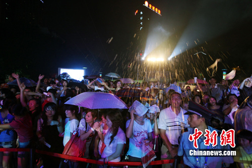 在開幕晚會上,原花兒樂隊主唱大張偉的精彩演出更點燃了重慶市民的熱情。現場隨處可見被啤酒淋得全身濕透的市民,毫不在意地揮舞著手中的熒光棒與臺上的歌手互動。