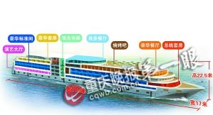 由歐洲游船專家、裝飾專家參與設計,長江上最舒適豪華的游輪———“世紀寶石”號,昨晚(9月1日)在(重慶)朝天門碼頭下水首航,標志著三峽游輪開始與歐洲豪華游輪水平逐步接軌。