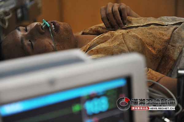 9月15日晚,小陸躺在第四醫院的病床上。 圖/瀟湘晨報滾動新聞記者 邵驍歆