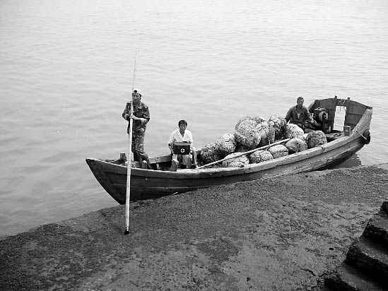 9月10日,記者坐上去壁下島的船。海水很藍,周圍點綴著很多小島。經3小時航行,記者來到壁下島。這是一個很小的島,遠遠看去,像飄在海上的一片樹葉。整個島只有1.2平方公里,從島的這頭到那頭,走路最多只要半小時。