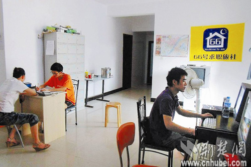 該旅館老板叫王曉華,今年28歲。他畢業后在一家外企武漢分公司做銷售經理。一次偶然的機會,他在網上看到上海的求職公寓十分火爆,于是萌發了創業的想法。去年,王曉華辭去工作全力籌備,今年初公寓開業。因為希望求職者順順利利,于是就取名66號求職公寓。