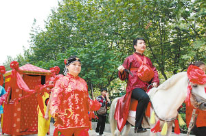 新郎說,這種古典婚禮一點也不鋪張,從請婚慶公司策劃到實施,算上所有的費用,一共花了約4000元。(記者 伊永軍)