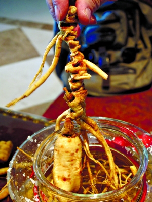 昨日,位于黑龍江商品大集的一家商鋪老板王紅(化名)透露,人參好不好,要看頭部上面的須條長(zhǎng)不長(zhǎng)。越長(zhǎng)表示年數(shù)越多。“上面一個(gè)輪就代表一年。”