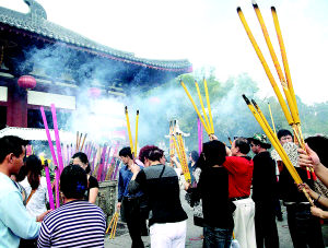 游客在“燒高香”(資料圖片/圖片來源:《中國旅游報》)