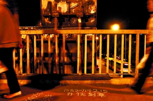 昨天傍晚,劉家窯橋東一過街天橋,因護(hù)欄有缺口,一女童在天橋上玩耍時不慎跌下。實(shí)習(xí)生周崗峰 攝