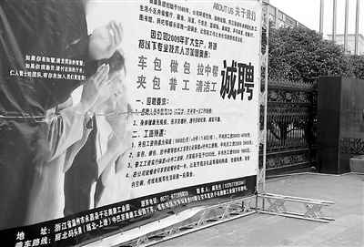 圖為溫州各大小企業門口現在已開始擺出大型招工牌