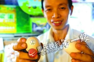 每只雞蛋都貼上了山藥面的廣告 記者 冉文 攝(圖片來源:重慶晚報)
