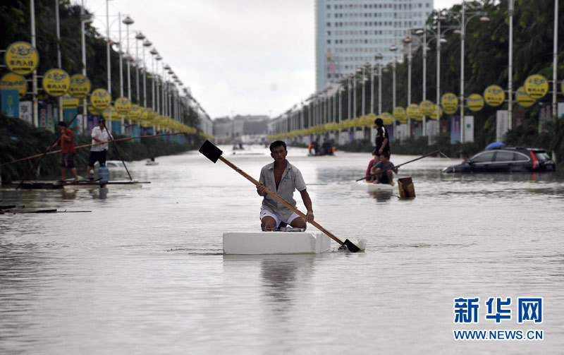 近日,受持續暴雨影響,海南省多地受災,部分水庫大壩出現險情;海口、瓊海等城市出現內澇,其中瓊海市加積地區5天降雨量累計達1020毫米,市區多條主要路段出現嚴重積水,部分路段電力中斷,對市民生活造成了很大影響。新華社記者 郭程 攝